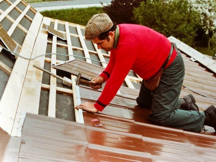 Während einer Inventur stieß Heinrich auf einen Restbestand von ziegelrot beschichteten Dachplatten – vermutlich aus einer Sonderbestellung oder einem Testlauf, denn damals waren nahezu alle Dächer in dunklen Grautönen gehalten. Zu diesem Zeitpunkt wurden die Platten chemisch gefärbt und parallel zur unbehandelten Ausführung angeboten. Heinrich entschied sich damals die roten Dachplatten zu kaufen und wurde so Besitzer eines der ersten farbigen Prefa Dächer, welches die Charakteristik der Dächer in der Region noch immer prägt. Das Ehepaar hat das neue Dach mit seinen eigenen Händen und viel Fleiß selbst ausgetauscht. Auf jegliche fremde Hilfe haben die beiden verzichtet. Das Ergebnis kann sich sehen lassen: „Bis heute waren keine Reparaturen notwendig. Das Dach sieht aus wie damals“, erzählt Anna stolz.