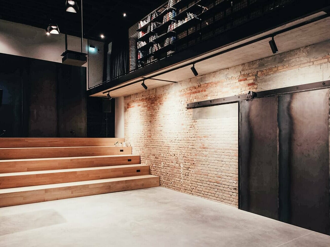 Räumlich wurden Eingangshalle, Bürogebäude und der große Hauptkinosaal behalten. „Wir haben sofort gewusst, dass wir daraus etwas Großartiges machen können“, erklärt Begović. Besonders angetan waren die Architekten von dem 9,5 Meter hohen Kinosaal mit seiner markanten Stahlbetondecke. Diese wurde aus einer Reihe von Längsrippen gefertigt und gilt als historisches Beispiel für das Betoningenieurwesen. Den großen Saal hat man in zwei Stockwerke aufgeteilt, um oben einen funktionalen Arbeitsbereich und unten Konferenzräume für das Architekturbüro schaffen zu können. Neu hinzugekommen ist ein Glaspavillon, wo früher der Eingang des Kinos war. Er gehört zum angrenzenden Café, welches sich in der ehemaligen Eingangshalle befindet. Direkt darüber entstanden Büroräume, die man aktuell vermietet. Erneuert wurden etwa auch Bodenbeläge, Wandverkleidungen oder Innenausstattungen. „Uns war es wichtig, kaputte Dinge zu verbessern, aber gleichzeitig den schönen Rahmen des Gebäudes zu erhalten“, sagt Begović.