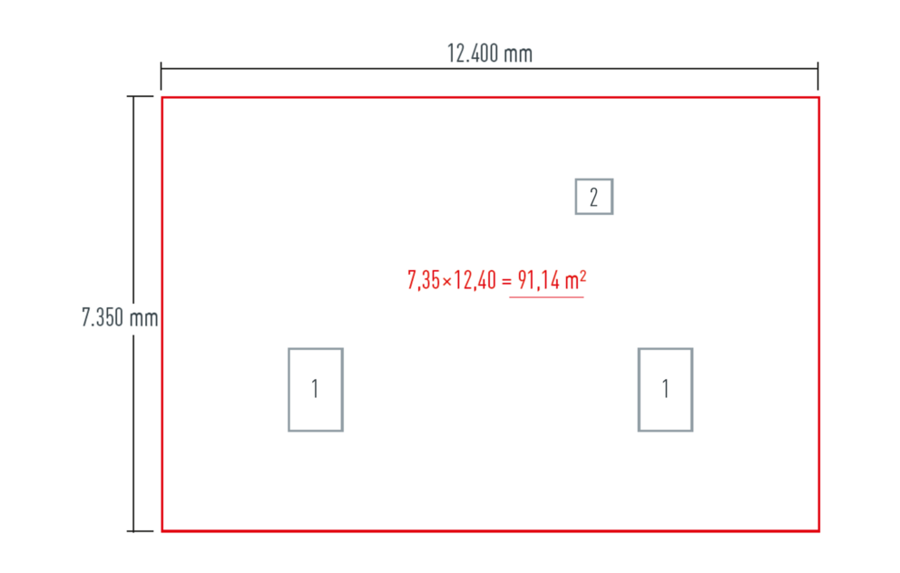 Bei einem Stückverhältnis 2 : 1 (große Paneele : kleine Paneele) beträgt der Flächenanteil der kleinen FX.12-Paneele 20 %.
