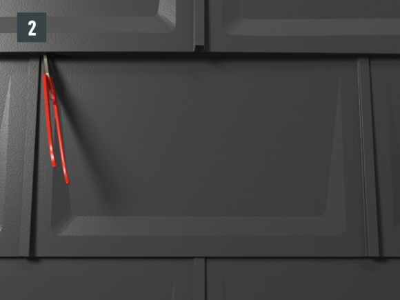 • Befestigung entfernen und oberen Patentfalz einschneiden (Bild 2).