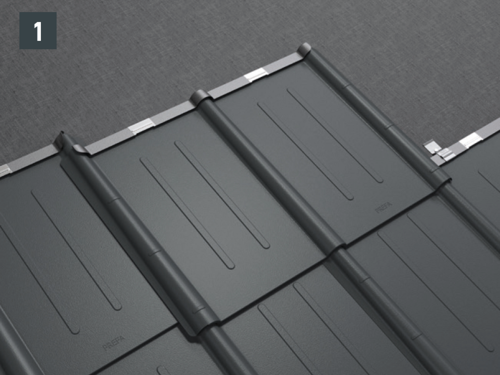 Ein generelles Abspannen der Überlappungsrillen ist im Normalfall nicht notwendig. Bei unebenen Dachflächen (Überlappungsrille liegt nicht auf) kann ein händisches Abspannen notwendig sein.