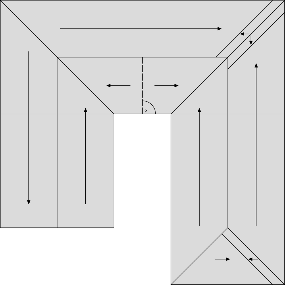 Die Dachplatten machen eine Verlegung in beiderlei Richtungen möglich. Wenn es die Gegebenheiten erlauben (z. B. bei Satteldächern und Pultdächern), ist die Deckung in Richtung Wetterseite vorzuziehen.