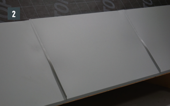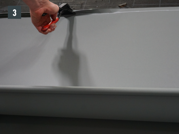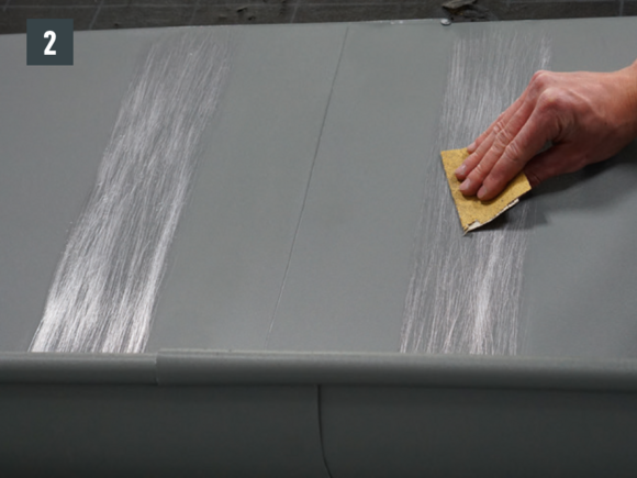• Klebefläche für Saumrinnendila an den Saumrinnen markieren (Breite ca. 6 cm) und anschleifen (Bild 2).