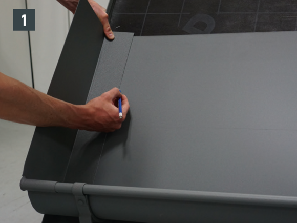 • Saumrinnenendboden aufstecken und Überlappungsbereich anzeichnen. (Bild 1).