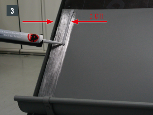 • Mit PREFA Spezialkleber eine Kleberaupe mit ca. 8 mm Dicke aufbringen (Bild 3).