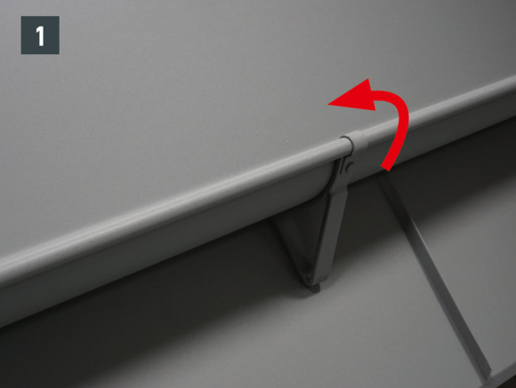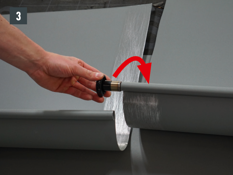 Fälze so weit umlegen, dass die Saumrinne mind. 15 cm auf dem Saumblech aufliegt. Gefälle beachten.