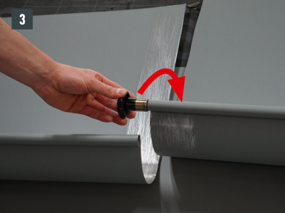 • Überdrehenden Saumrinnenwulst mit dem PREFA Rinnenwulstöffner aufdrehen, um späteres Ineinanderdrehen zu erleichtern (Bild 3).