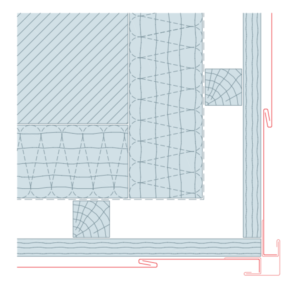 Innen- und Außenecken werden meist mit zwei Taschenprofilen und einem Eckwinkel ausgeführt. Achten Sie hierbei auf eine absolut senkrechte und dehnungsgerechte Montage der Taschenprofile und auf die Anordnung von Fest- und Gleitpunkten.