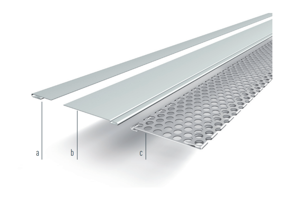 Für den unteren Anschluss werden aus dem PREFA Ergänzungsband bzw. dem PREFA Lochblech folgende Profile vorgefertigt: