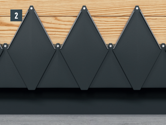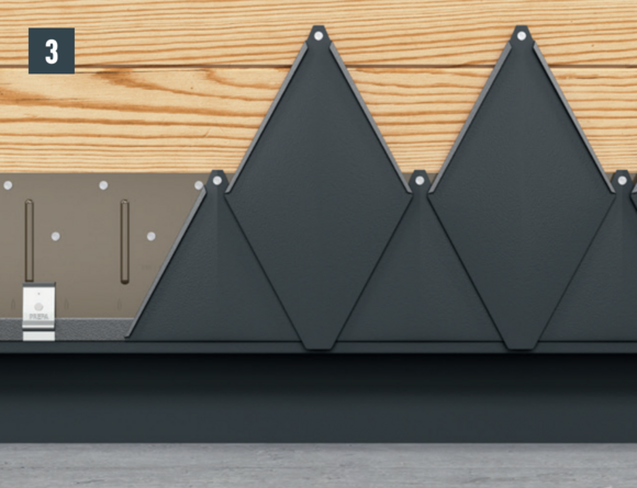 Die Befestigung jeder Raute klein erfolgt direkt durch das vorgestanzte Befestigungsloch mit einem mitgelieferten Rillennagel 2,8/25.
