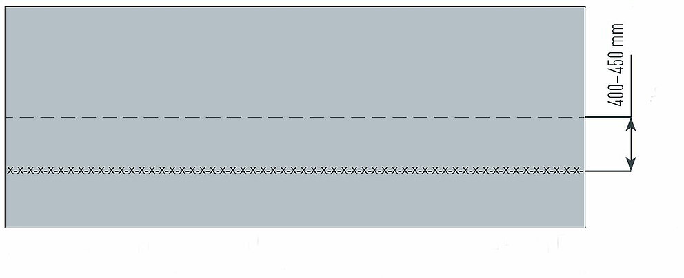 Die PREFABOND Verbundplatten sind rückseitig mit einem immer wiederkehrenden Aufdruck versehen. Die Chargennummer ist bei allen Plattenbreiten immer in einem Abstand von ca. 400 mm bis 450 mm von der Mitte der jeweiligen Baubreite positioniert. Sollte der Aufdruck durch das Bearbeiten unleserlich oder nicht vollständig abgebildet werden, beschriften Sie die Platte entsprechend nach, um die Nachverfolgung gewährleisten zu können.