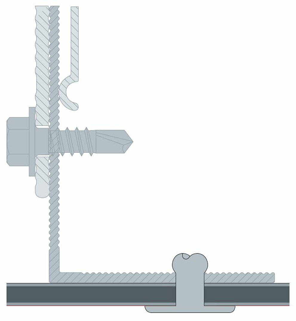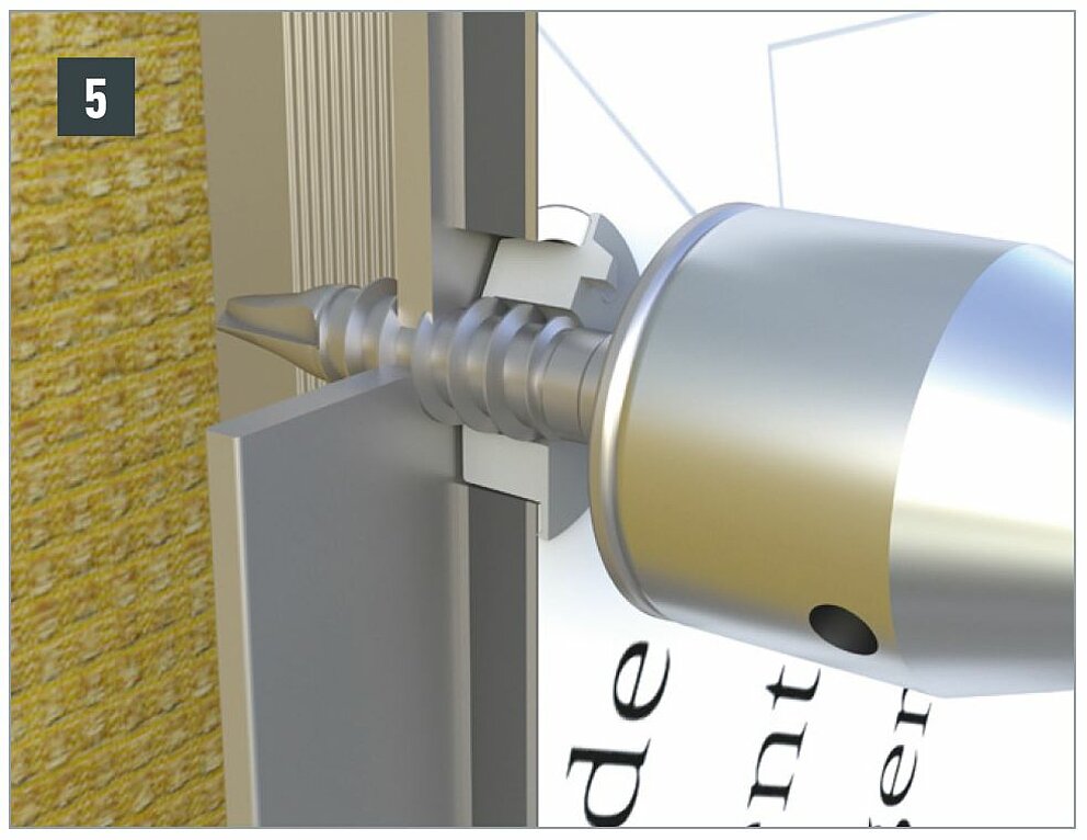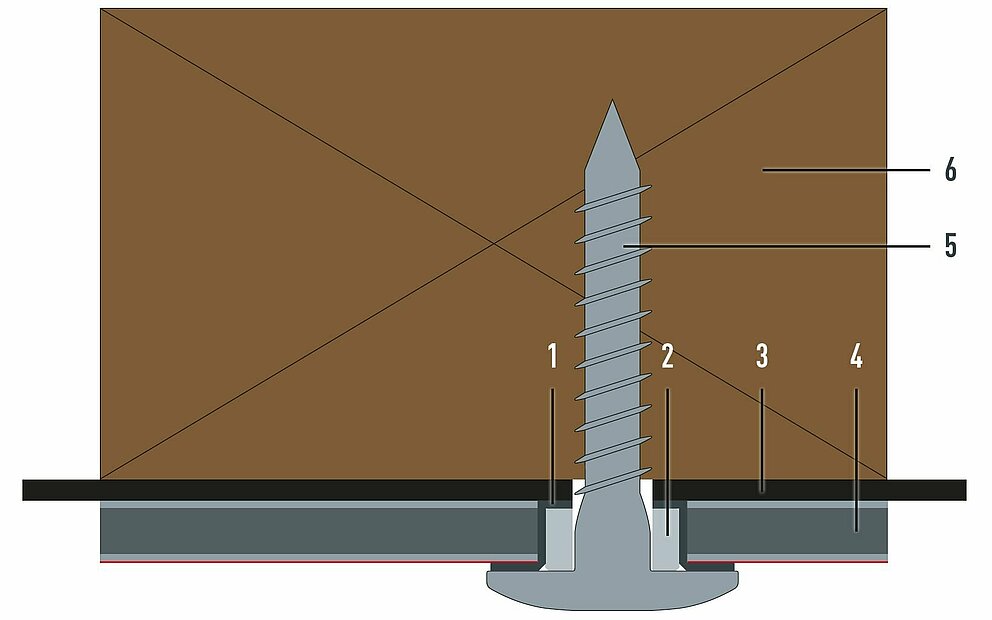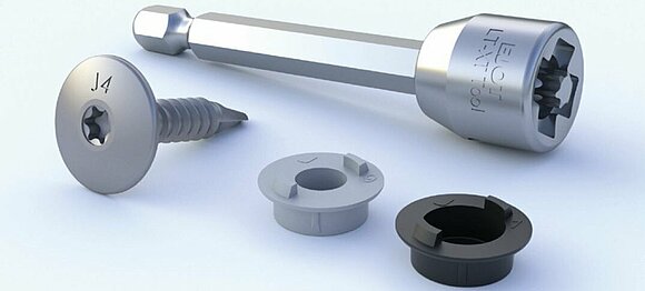 Das mechanische Befestigungssystem geschraubt besteht aus einer Fassadenschraube, einem Spezialbit LT-XT TOOL TX 25 und darauf abgestimmte Fest- und Gleitpunkthülsen.