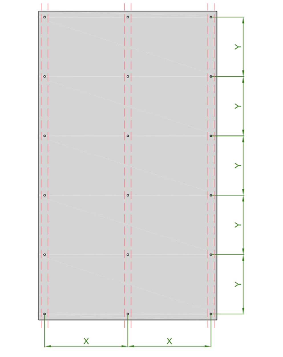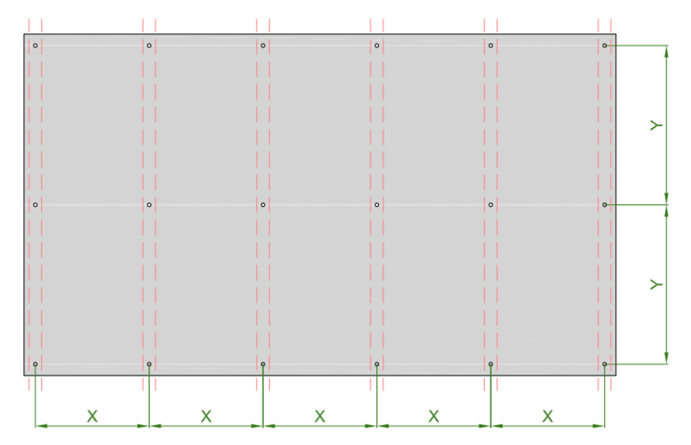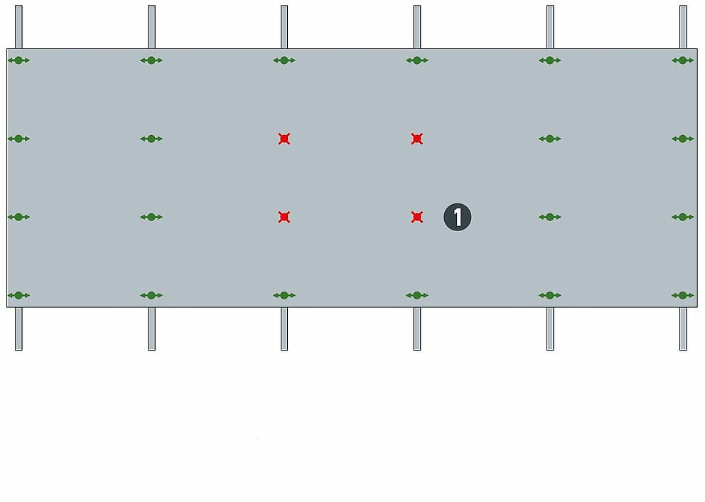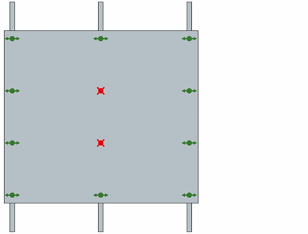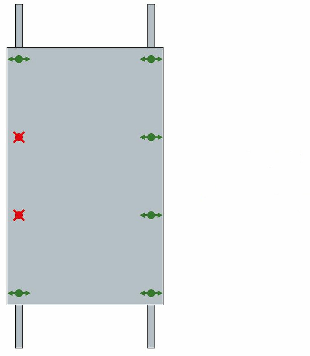 Unabhängig von der Plattengröße werden für die mechanische Befestigung jeder Platte mindestens 2 Festpunkte benötigt. Nur so kann gewährleistet werden, dass die Platte stabil positioniert ist und sich nicht verdrehen kann.