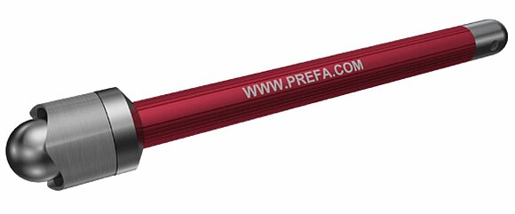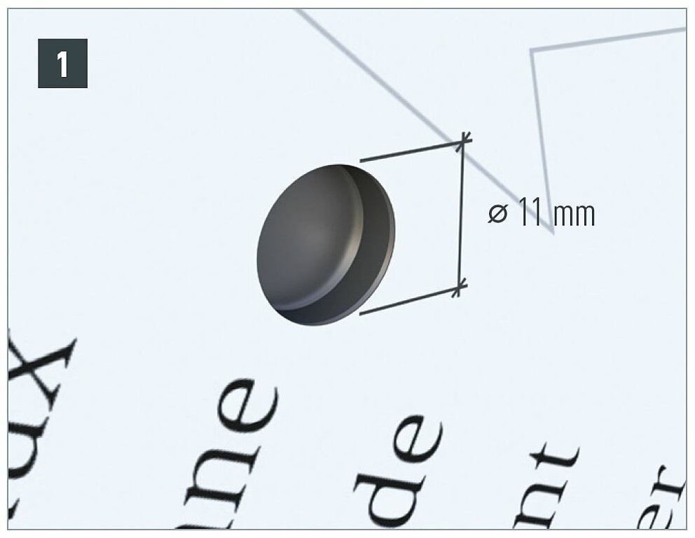 Ritzen Sie mit dem PREFA Folienschneider (⌀ 5,1 mm und ⌀ 9,5 mm) die Schutzfolie rund um das Bohrloch leicht an, sodass die Schutzfolie nach Vollendung der Montage ohne Mühe abgezogen werden kann. Ansonsten kann es passieren, dass die Folie zwischen der Platte und der Unterseite des Nietkopfes geklemmt wird, was das Abziehen erschwert.
