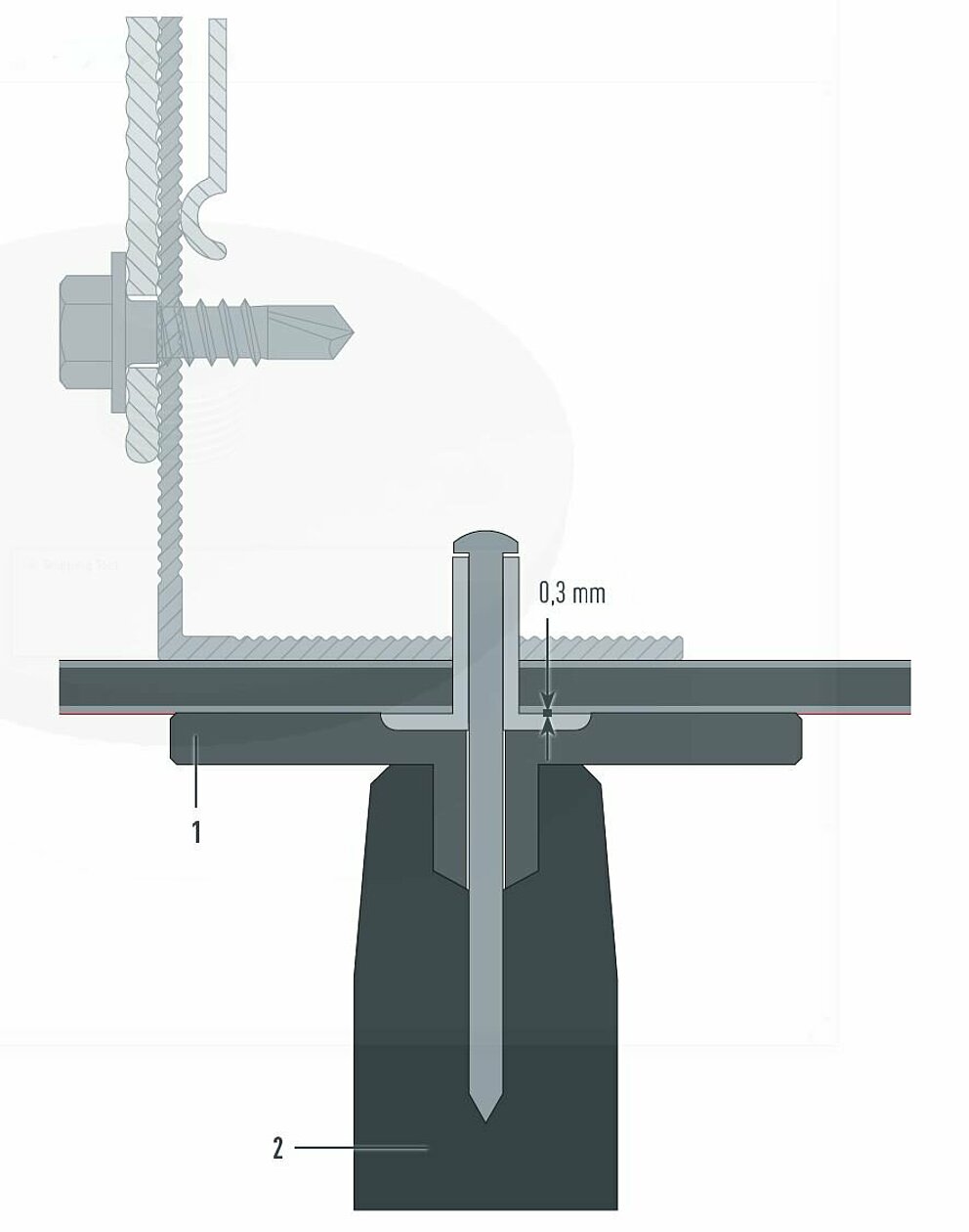 Verwenden Sie beim Nieten, unabhängig ob Fest- oder Gleitpunkt, immer das passende Plattenmundstück, um so eine Verformung der Oberfläche zu verhindern sowie die Gleitfähigkeit der Platte zu gewährleisten (Materialausdehnung).