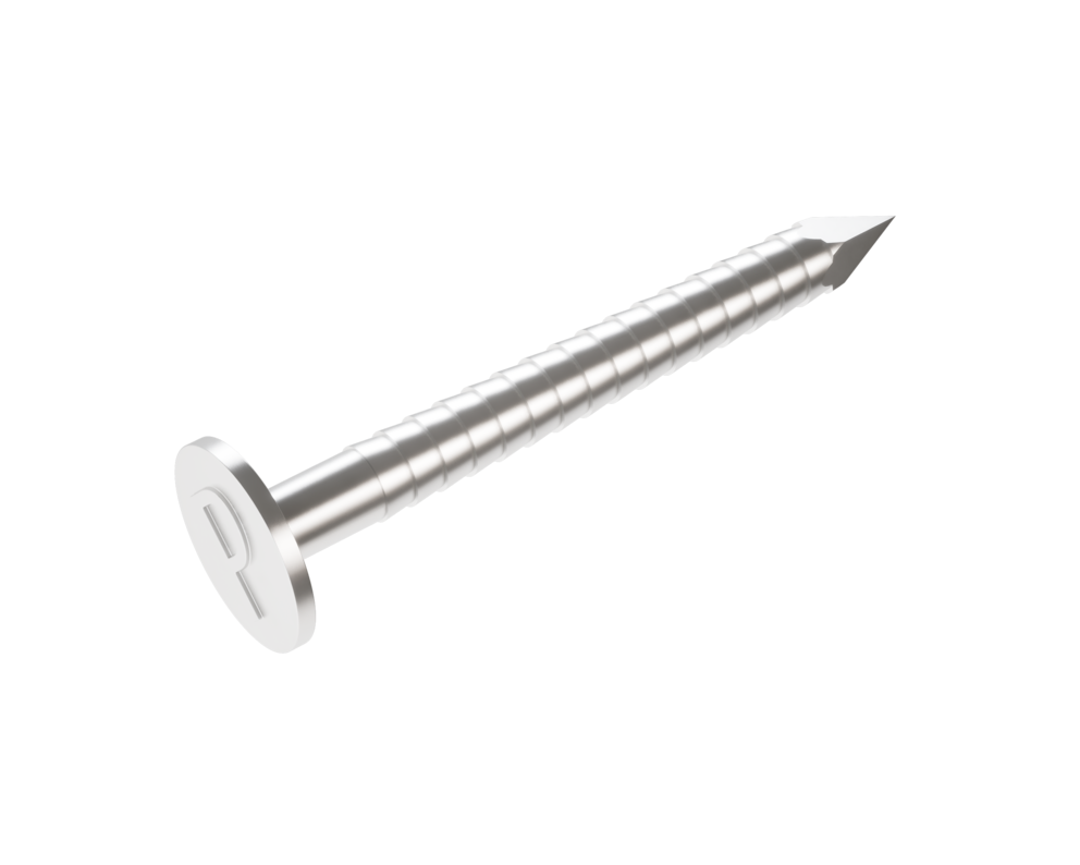 Für Befestigungen von Stehfalzdeckungen sind Hafte mit Nägeln, Schrauben oder Nieten aus nichtrostendem Stahl zu verwenden. PREFA bietet aus diesem Grund für die Befestigung von PREFALZ Eindeckungen Niro-Rillennägel in unterschiedlichen Längen an.