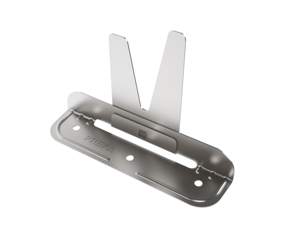 PREFA Doppelstehfalz- und Winkelstehfalzeindeckungen werden mit PREFA Niro Winkelstehfalz- und Winkelschiebehaften befestigt. Diese sind systemgeprüft und bilden die Grundlage für die weitere Berechnung der Haftabstände sowie die statische Bemessung von Solaranlagen.