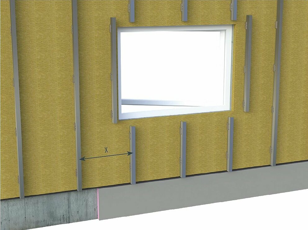 Beachten Sie die empfohlene maximale Auskragung von Siding, Siding.X und Siding Perforiert gemäß den statischen Anforderungen an ungestützten Gebäudeecken / im Randbereich von maximal einem Viertel des Unterkonstruktionsabstandes.