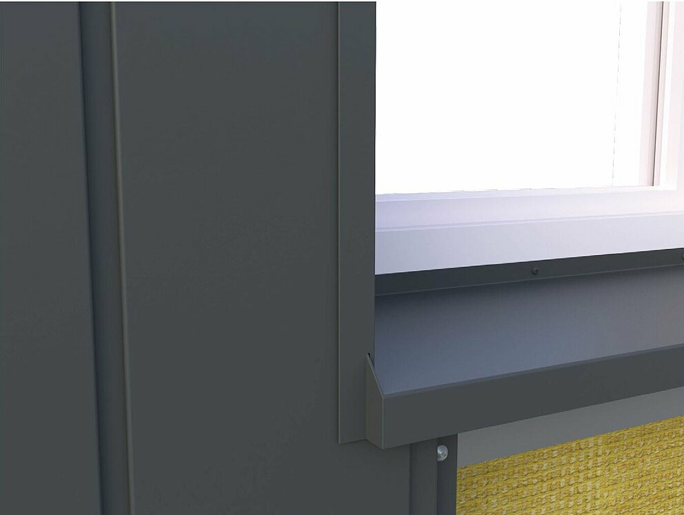 Kanten Sie anschließend für die bauseitigen Gegebenheiten ein oberes Laibungsblech und schieben Sie es in die Steckleiste ein. Der Wetterschenkel wird in das obere Laibungsblech eingehängt.
