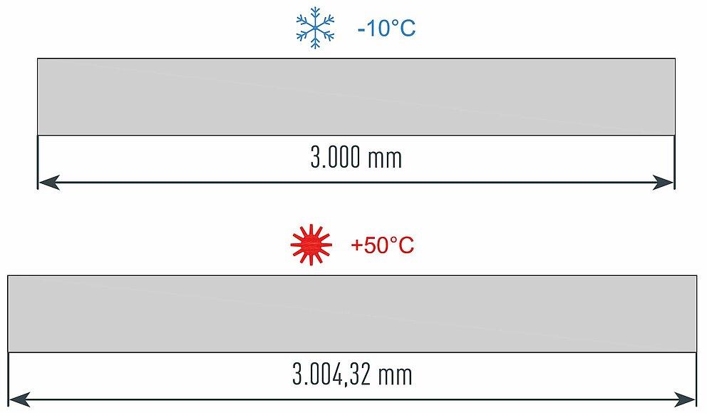 Ausdehnung bei 100° Temperaturunterschied |