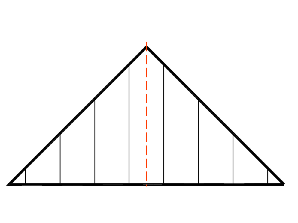 Bei Dreiecksflächen (z. B. Giebelwandverkleidungen) ist die symmetrische Ausrichtung des Sidings wichtig, um ein optisch ansprechendes Erscheinungsbild zu erzielen. Aus diesem Grund empfiehlt es sich, die Flächen vor Beginn der Montage zu schnüren, um mittig der Fassadenfläche entweder einen Stoß oder exakt die Mitte einer Siding-Baubreite zu platzieren.