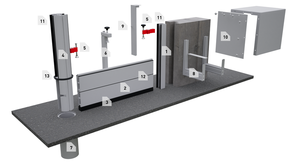 Verhindert die vertikale Durchbiegung der Dammbalken und erhöht den Druck auf die Bodendichtung.