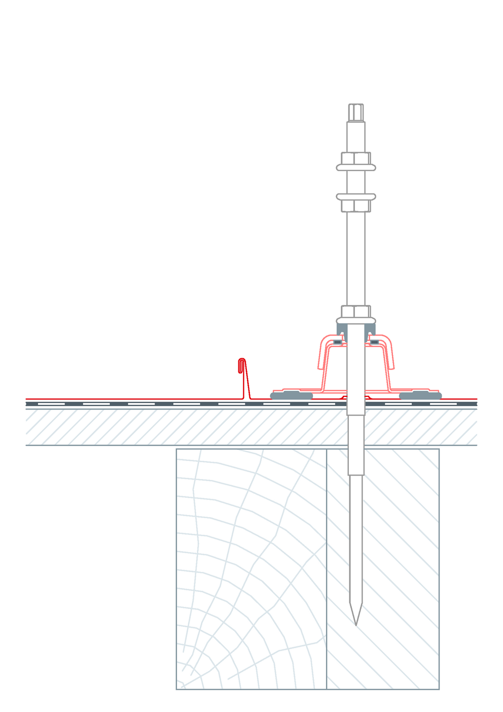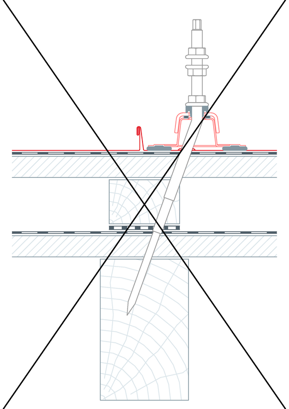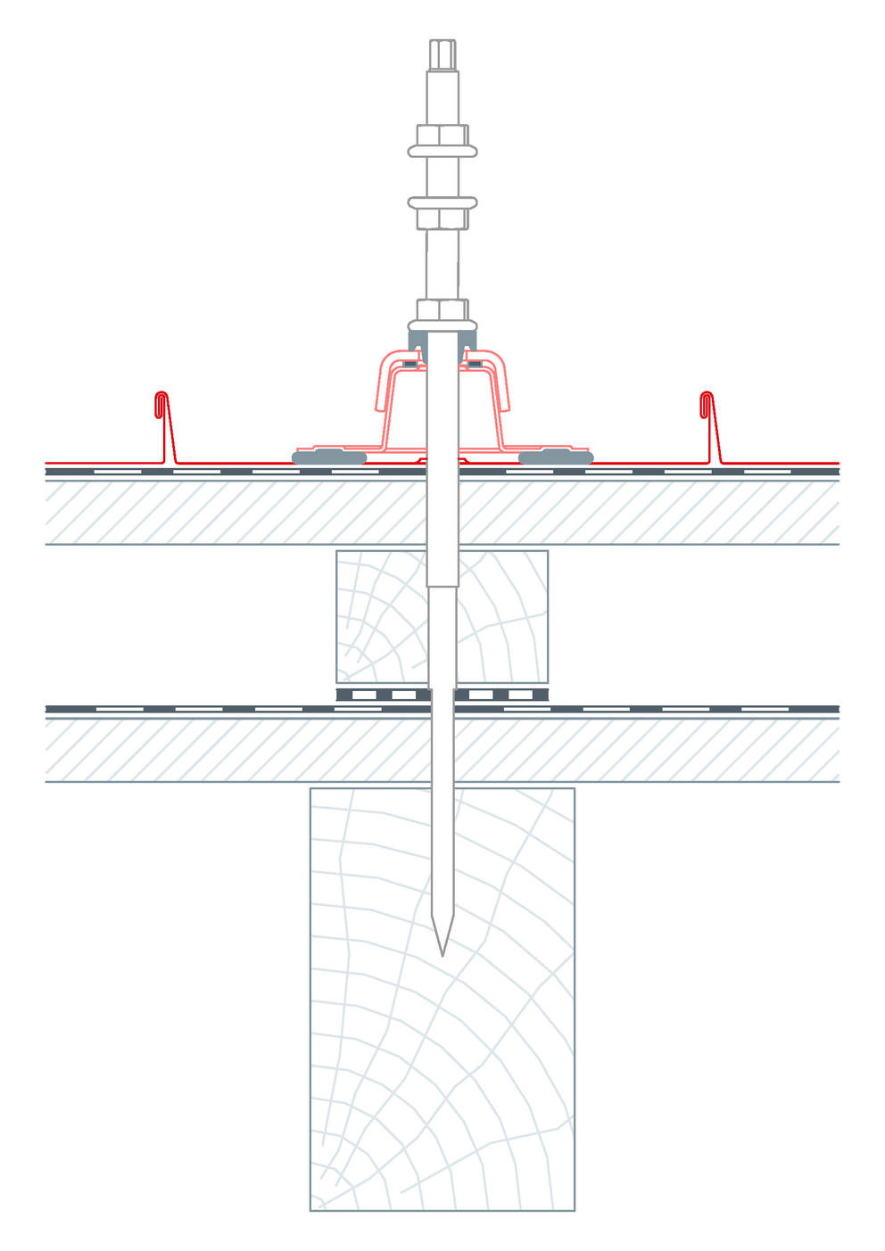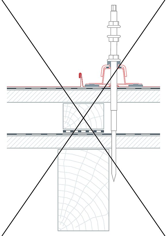 Bei einschaligen Dachkonstruktionen könnte die Unterkonstruktion der Stockschrauben versetzt werden (z. B. Sparrenaufdopplung über die gesamte Sparrenlänge, Querriegel einziehen).
