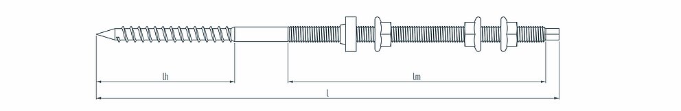 (Holzgewinde: 100 mm; Freistellung: 40 mm; metrisches Gewinde: 195 mm)