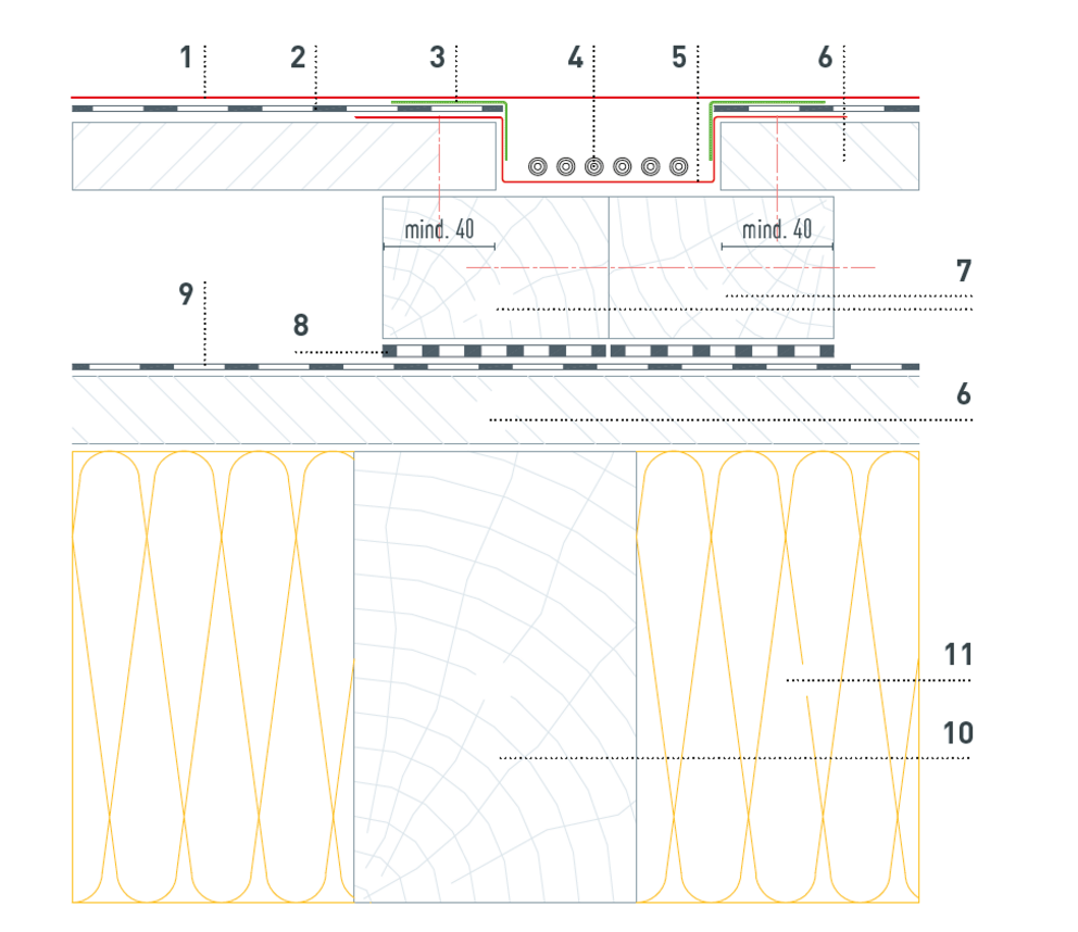 Bei Verwendung von Holzwerkstoffplatten ist eine Trennlage erforderlich.