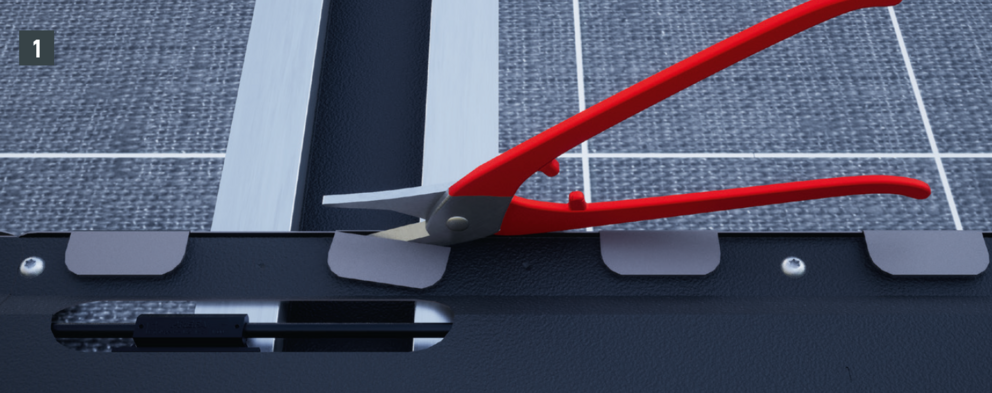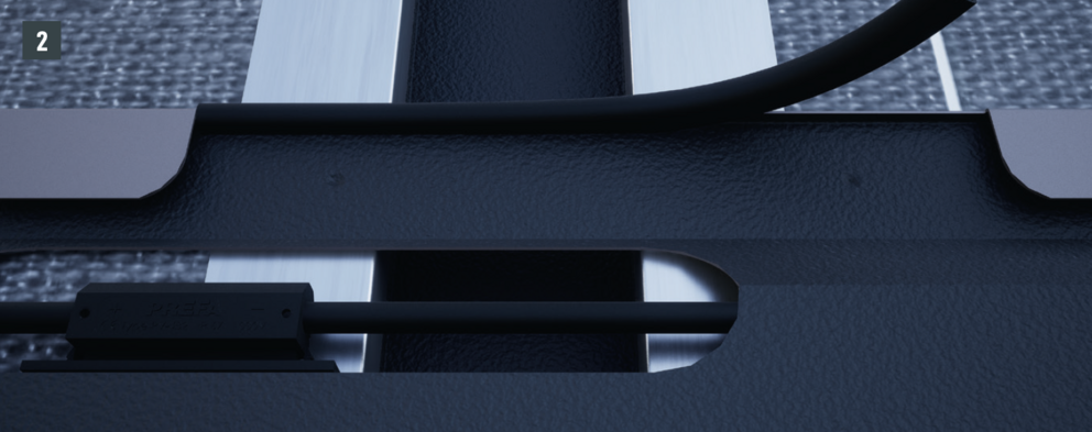 • Aufbringen des mitgelieferten Kantenschutzes im Bereich des Kabelkanals (Bild 2)