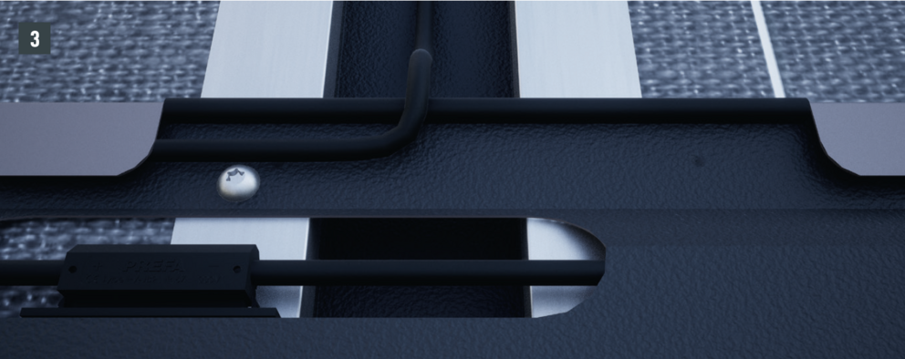 • Die Verbindungsleitungen und Strangleitungen werden über den Kantenschutz in den Kabelkanal geführt (Bild 3).