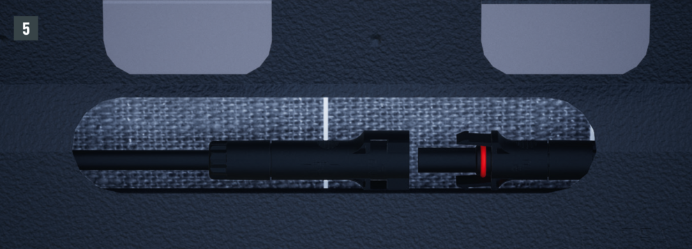 • Kontaktierung der Stecker, vorsichtiges Zusammenstecken, bis diese vollständig geschlossen sind und die Feder eingerastet ist (Bild 5)