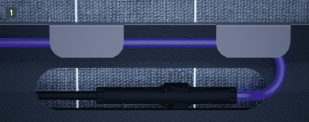 Der Solargenerator ist fertiggestellt, sobald sämtliche Solardachplatten kontaktiert sind und die Zu- und Ableitung jedes einzelnen Stranges mit dem isolierten Ende zum Gebäudeeintritt geleitet wurden.