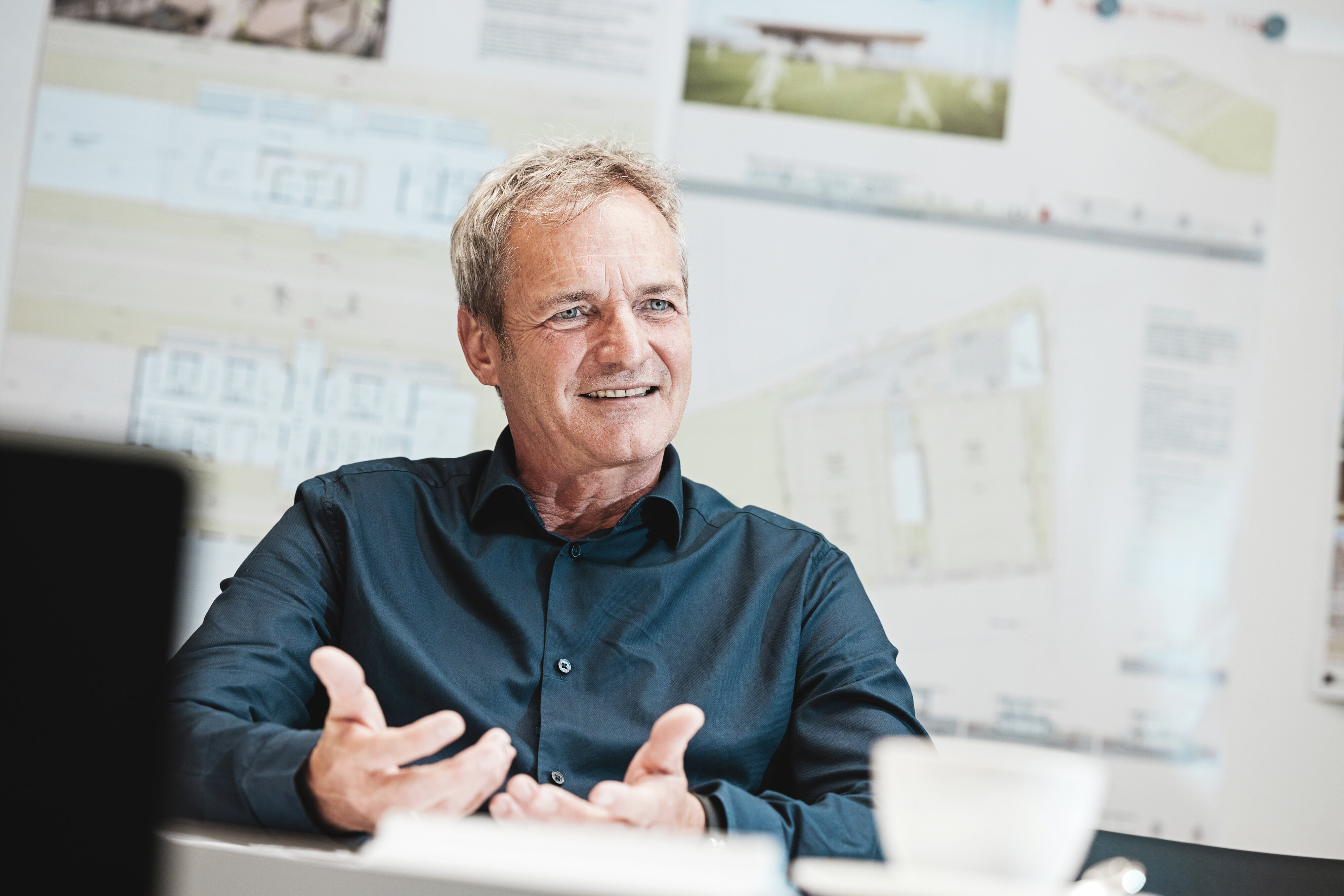 Das Veranstaltungszentrum fügt sich harmonisch in die Ortsmitte ein und lenkt mit seiner Form und Anordnung den Blick auf die umgebende Landschaft. „Es war ein wirklich spannendes Projekt. Der Umgang mit der Lage auf dem Hügel und der Raumbedarf der Gemeinde mussten von uns strukturiert und gestaltet werden“, erklärt Max Stoisser, Gründungspartner von planconsort.