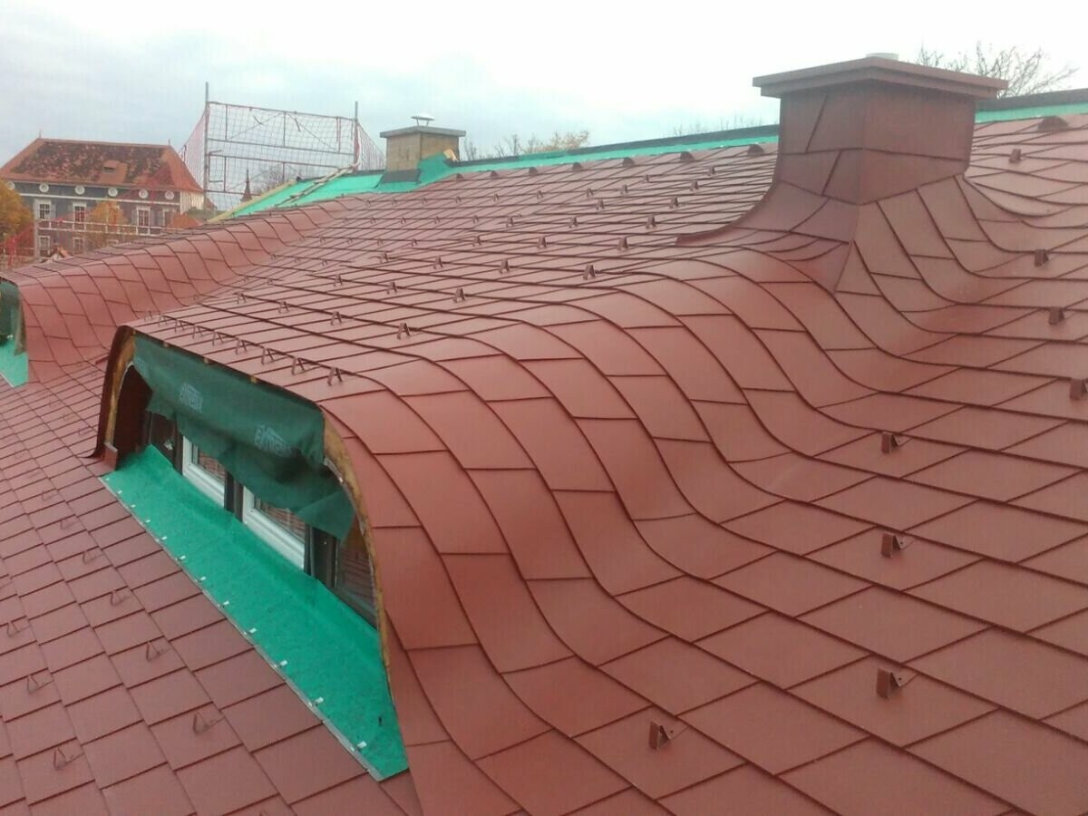 Runde sowie geschwungene Dachflächen stellen den Handwerker oft vor besondere Herausforderungen, speziell wenn diese ein identisches Erscheinungsbild wie die Hauptdachfläche aufweisen sollen. Gerade im Sanierungsbereich sind solche Dachformen immer wieder anzutreffen. Um den Charakter und den Charme dieser Gebäude nicht zu verlieren, sollte der Baustil und somit die Bauform unbedingt erhalten bleiben.