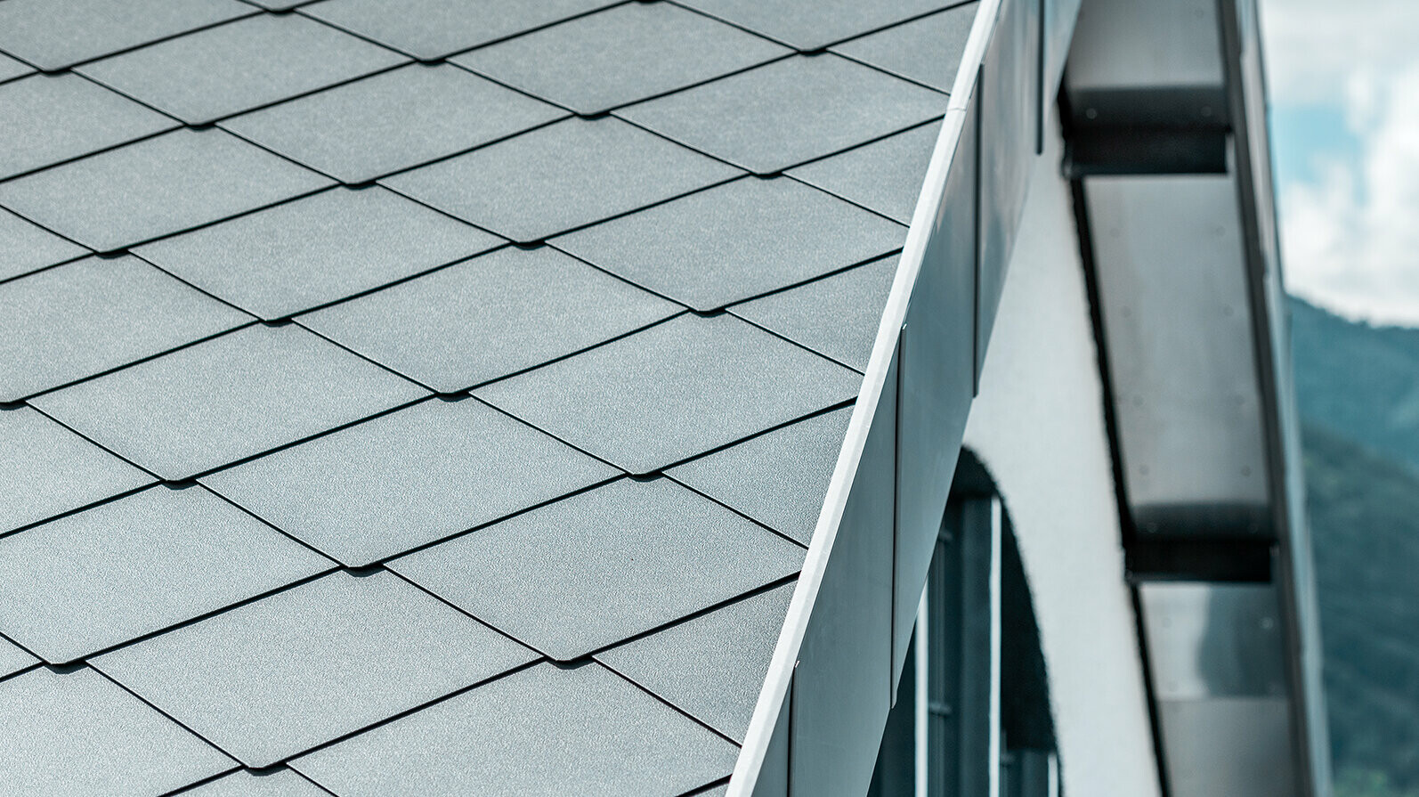 Die Felsenvilla in Prutz erstrahlt in neuem Glanz. Das sanierte Krüppelwalmdach wurde mit PREFA Dachrauten 44 × 44 in P.10 Anthrazit neu eingedeckt. Das dazugehörige Pyramidenturmdach wurde zusätzlich mit Akzenten in P.10 Hellgrau versehen. Die hochwertige Aluminiumverkleidung harmoniert perfekt mit den Verzierungen der Fassade und verleiht dem Gebäude ein zeitloses Erscheinungsbild.