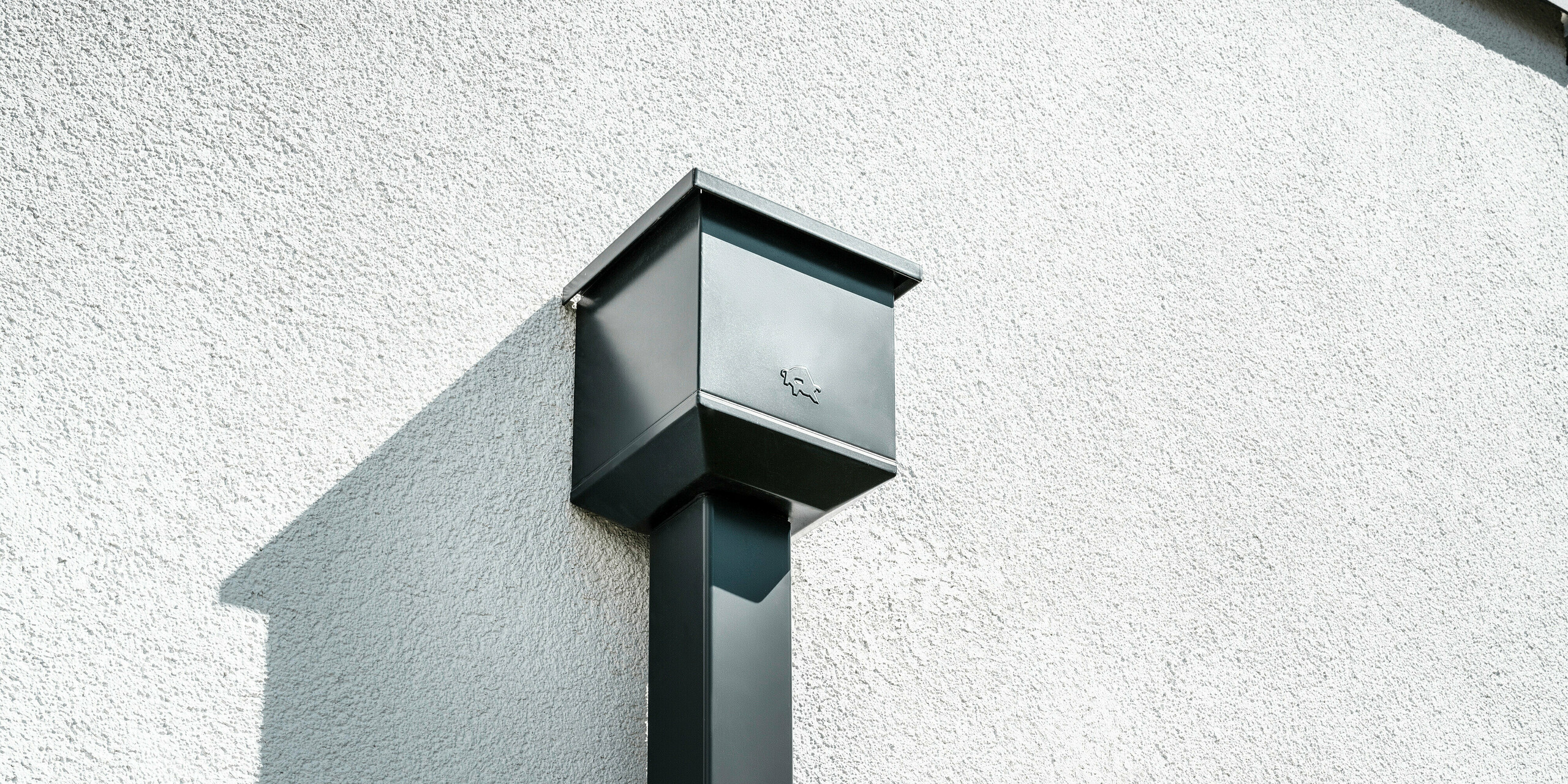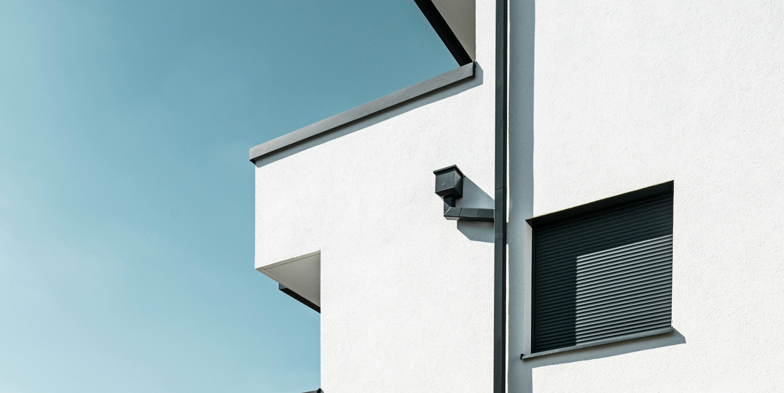 Eine Wohnanlage in Ahnatal, Deutschland wurde mit dem PREFA Quadratrohr in P.10 Anthrazit ausgestattet. Das kantige Dachentwässerungssystem fungiert an dieser Stelle auch als gestalerisches Designelement.