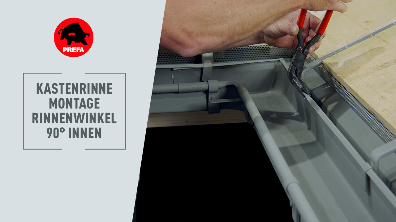 In diesem Video wird die Montage eines 90°-Innenrinnenwinkels der PREFA Kastenrinne gezeigt.