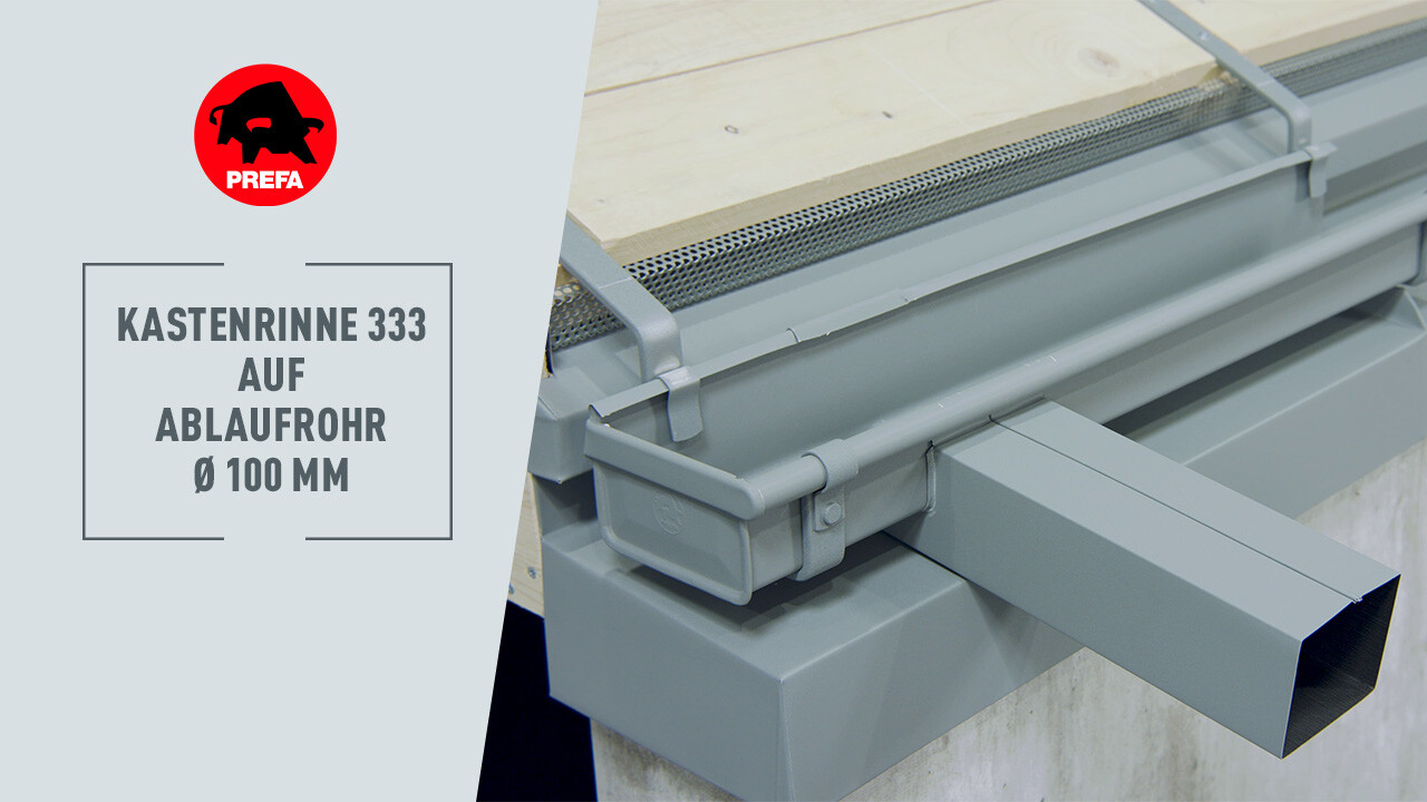 In diesem Video wird die Montage des Rinnenkessels der PREFA Kastenrinne gezeigt.