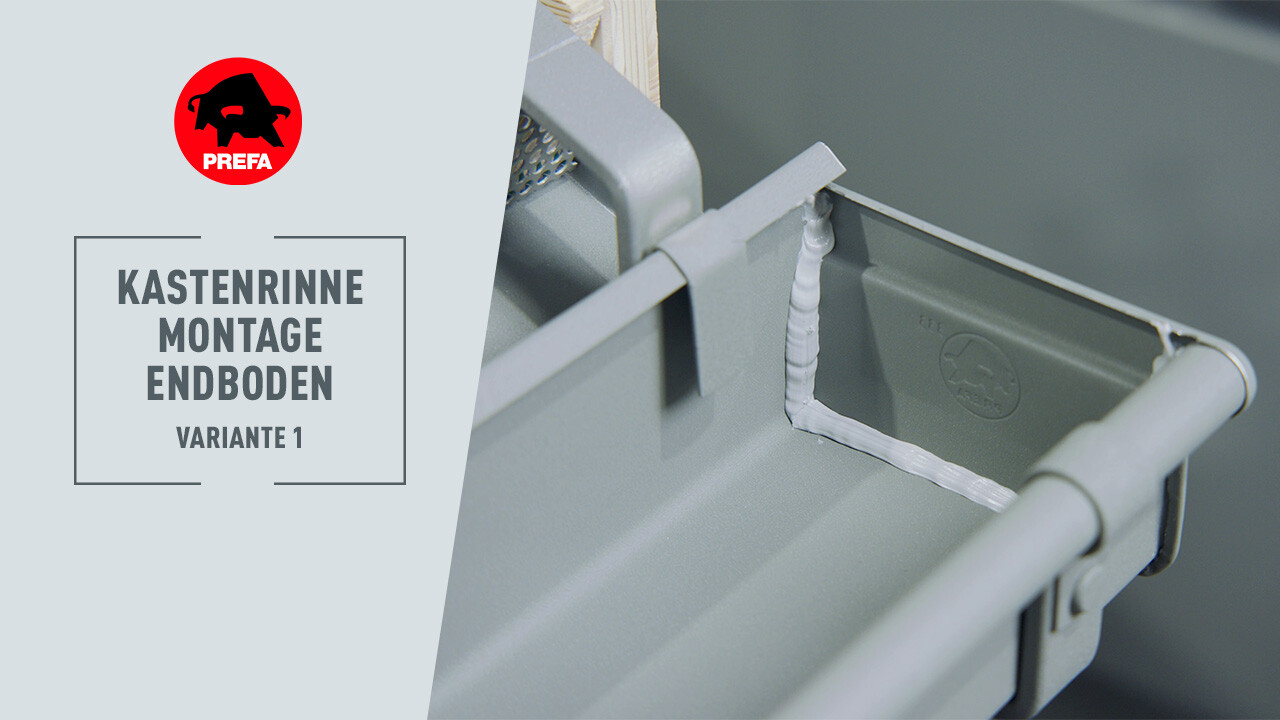 In diesem Video wird die Montage des Kastenrinnen-Endbodens bei einer PREFA Kastenrinne gezeigt.